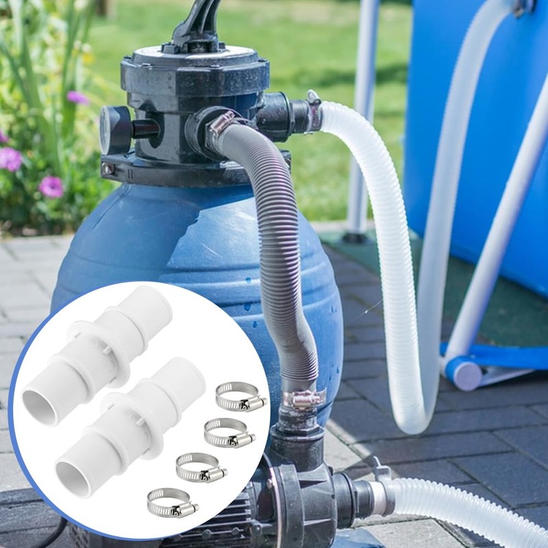 - 【POOL HOSE ADAPTER SET】You will get 2pcs pool hose adapter connectors, 4pcs iron hoops. These tools are able to meet most of the connection needs, convenient for you to install and adjust.Strong sealing for leak prevention ensures no worry swimming pool maintenance.