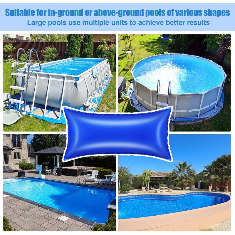 - WIDE APPLICATION: Our overwintering pool closing pillow are used for all above ground pools such as round, square and oval above ground pools, inflatable swimming pools, spa hot tubs, etc., avoiding damage to the pool due to cold rain, snow and leaf build up in the winter months, and helping to keep the outdoor pool clean