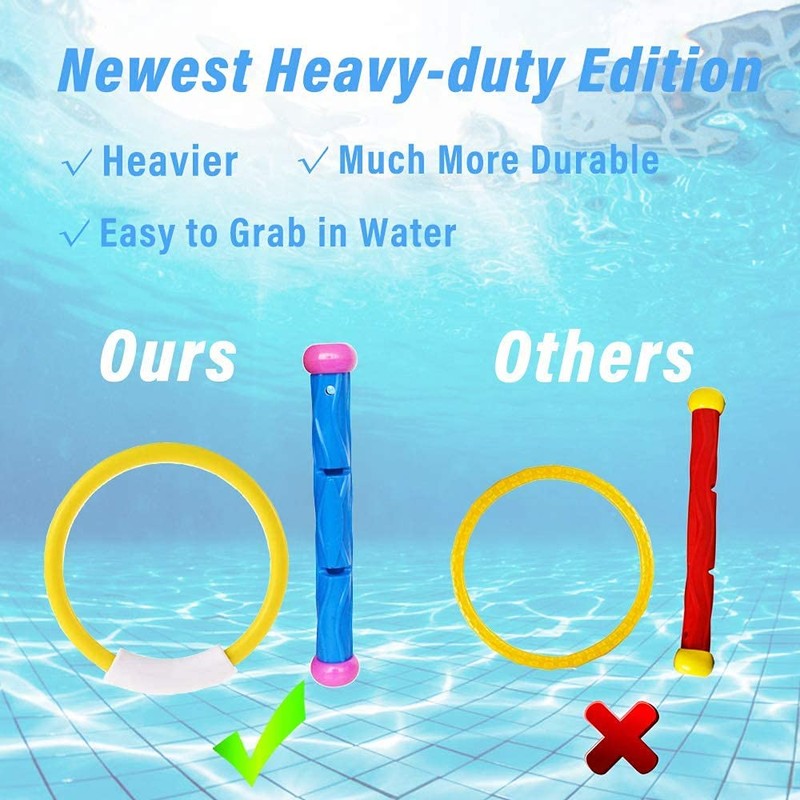 - 【Diving Toy Set】Swimming toys bring a lot of fun to your summer pool and swim in the pool where swimming toys catch swimming toys, repeatedly and for swimming training