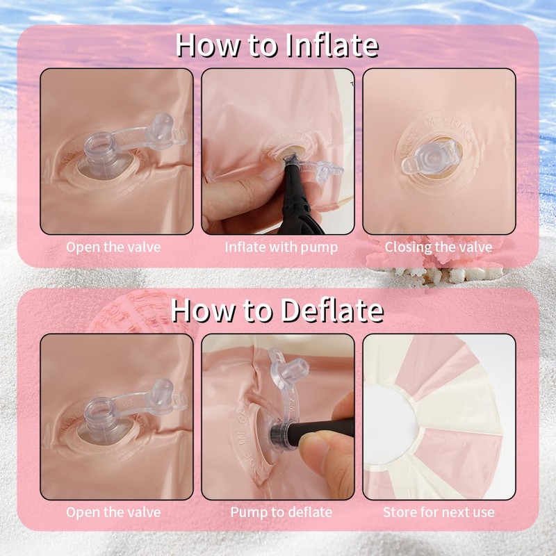 - Design: The pool float is easy to inflate, lightweight, easy to fold and carry. With an improved double layer anti-leak valve, it is easy to inflate the swim ring and reduce the likelihood of air leaks. Easy to deflate, can be put into a backpack without taking up space