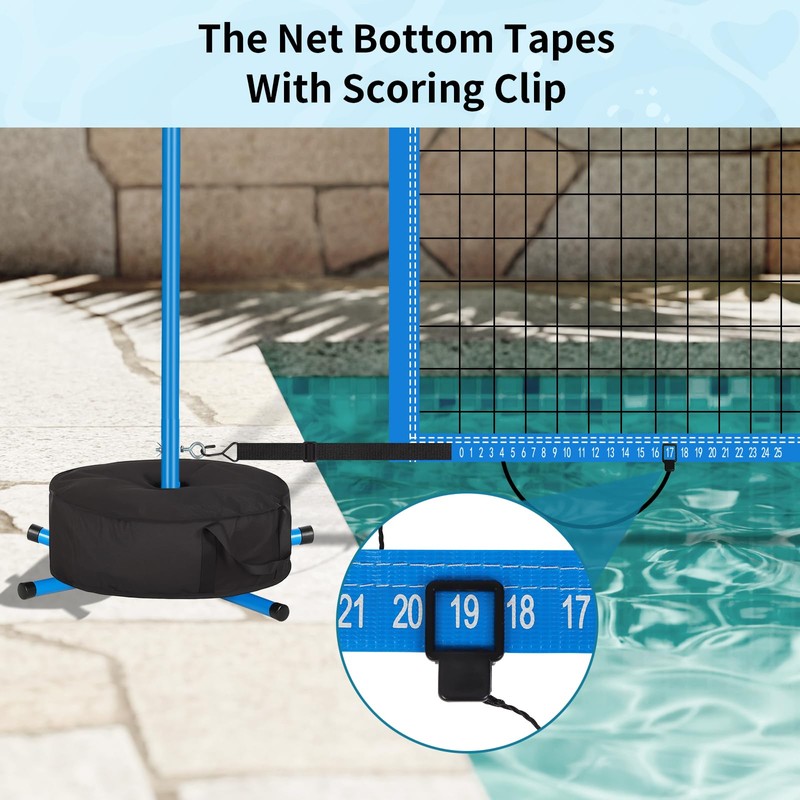Pool Volleyball Net Set for Inground/Above Ground Pools with Sand-Filled Weighted Base, 15-27ft Adjustable Anti-Sagging Net, 2 Volleyballs & Pump, Carry Bag