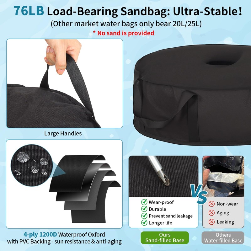 - ๐๐๐๐ ๐๐๐ง๐๐๐๐ ๐๐๐ฌ๐ - ๐๐ฎ๐ฉ๐๐ซ๐ข๐จ๐ซ ๐๐ญ๐๐๐ข๐ฅ๐ข๐ญ๐ฒ ๐ฏ๐ฌ. ๐๐๐ญ๐๐ซ-๐ ๐ข๐ฅ๐ฅ๐๐ ๐๐๐ฌ๐:โ Crafted from 1200D Oxford fabric with PVC backing, our 75LB sand-filled base is sun-resistant, durable, and anti-aging. It outperforms common 20-25LB water-filled bases that shift or tip on impact. With precision stitching to prevent sand leakage, this base stays firmly anchoredโno shifting or wobblingโensuring stable play even during intense hits.