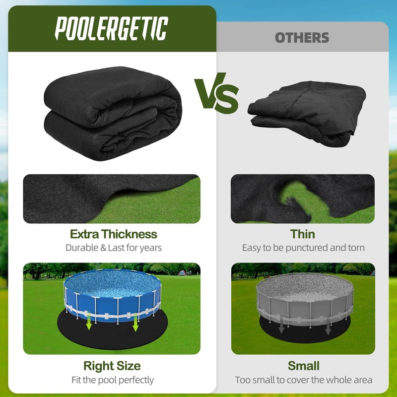 - 【Easy to Install】Our pool mat comes pre-cut for easy installation and can be customized to fit any size or shape of the pool. When using, simply place the mat under the swimming pool, slightly extend beyond the pool's edge, and trim it with scissors if necessary.