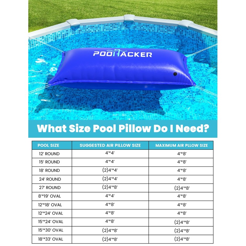 - Keep Pool Pillows in Place: The pool cover pillow is designed with 4 reinforced grommets, and equipped with a 50 ft rope, so you can center the air pillow for above-ground pools in the pool by using the rope, allowing the rope to be slightly loose. Make your winterizing setup perfect!