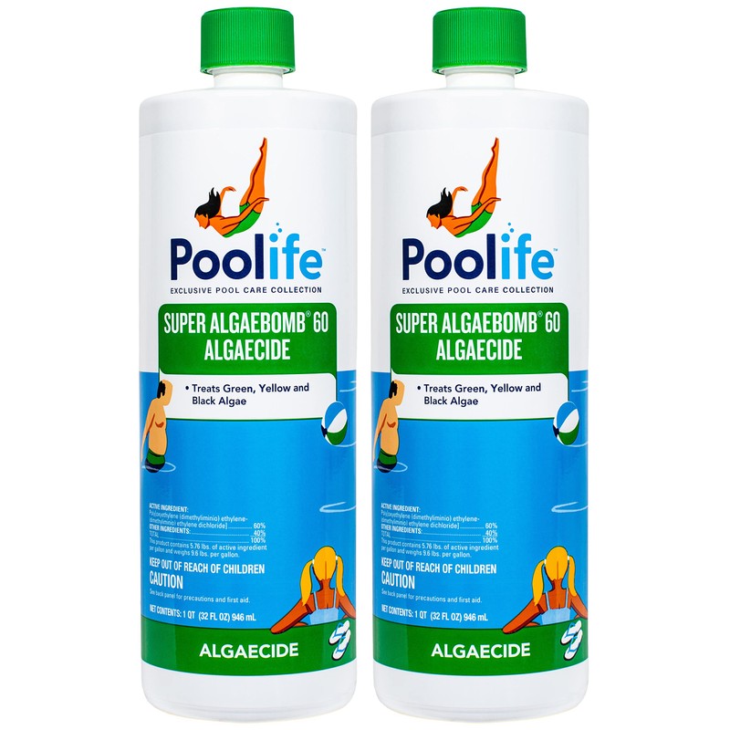poolife Super AlgaeBomb 60 algaecide is the strongest poolife liquid algaecide available. It is a non-foaming algaecide used to treat or prevent algae formation and growth in swimming pools, exterior spas, whirlpools, hot tubs, decorative fountains and synthetically-lined ponds that do not contain fish. It is also ideal for winterizing your pool in the off season.