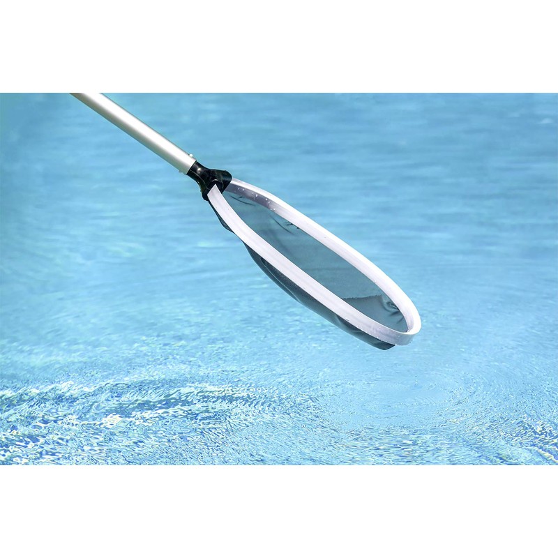 - Mesh net pool skimmer for removing surface leaves, bugs, and debris from pool or spa's water surface