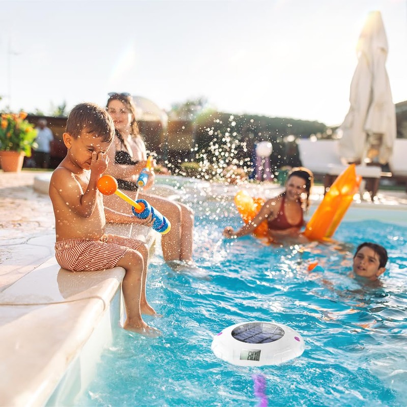 • 【Self-Sustaining Solar Power】Equipped with a high-efficiency solar panel, this pool thermometer harnesses sunlight to recharge its batteries effortlessly—no need for replacements! Enjoy 24/7 temperature monitoring while saving time, money, and the environment.