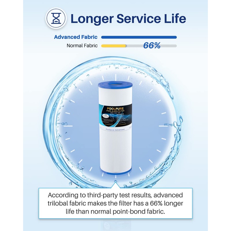 - NSF/ANSI 50 CERTIFIED: POOLPURE Pool and Spa filter has been rigorously tested and certified by IAPMO against NSF/ANSI 50, ensuring safe material usage. With a precision of 50 microns, our filter effectively removes hair, leaves, dust, sediment, sand, and other fine particles.