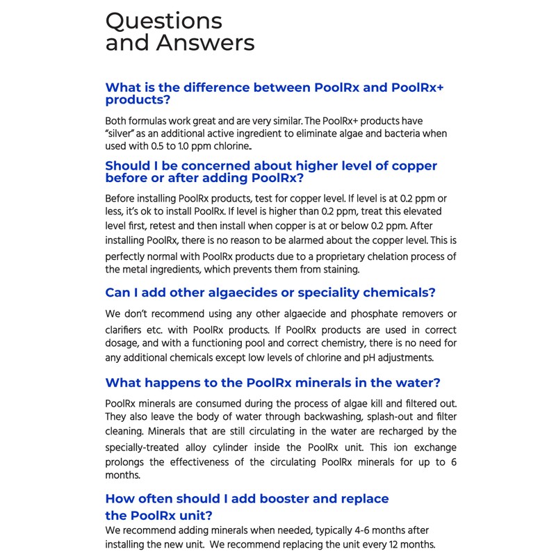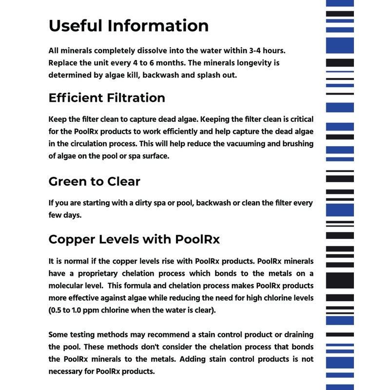 - Simplifies Pool and Spa Care. Replace the Poolrx unit in basket every 12 months.