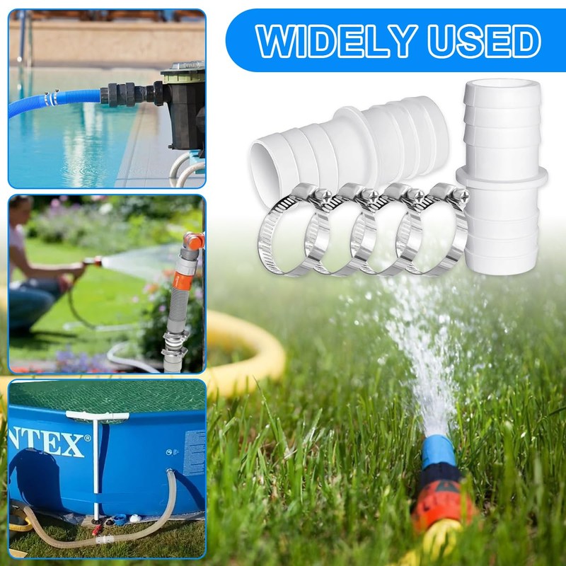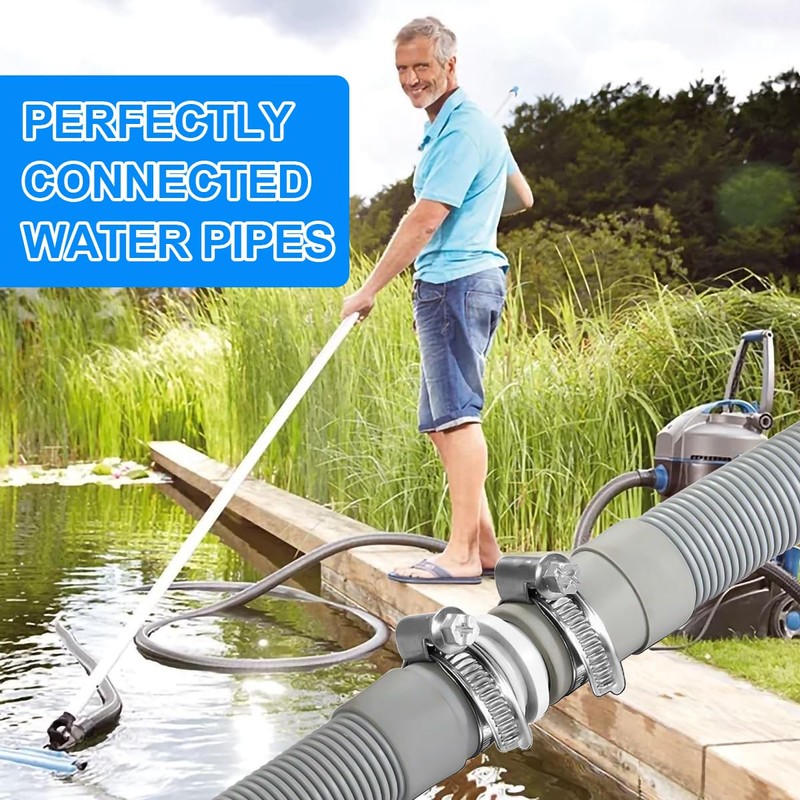 Poolschlauch 32mm auf 38mm Ø Set, Schlauchverbinder, + 4 Universal Edelstahl Schlauchschellen, Pool Schlauchadapter, Schlauchadapter (32-32)