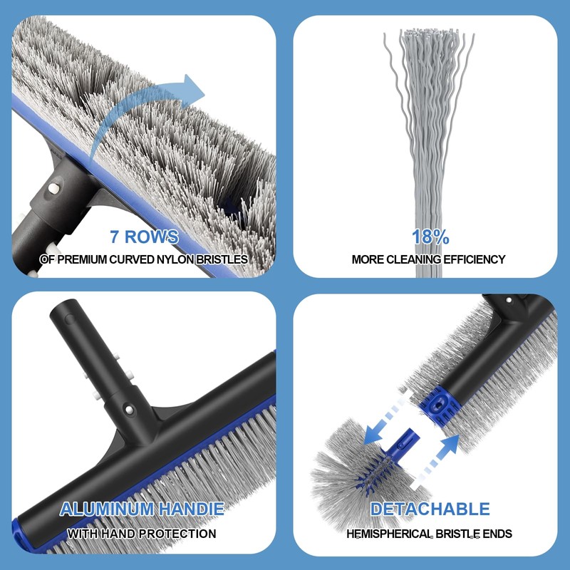 Poolvio 5-in-1 Pool Cleaning Kit - Includes Semi-Deep Skimmer Net, Aluminum Leaf Rake, 20' Pool Brush with 13ft Adjustable Pole