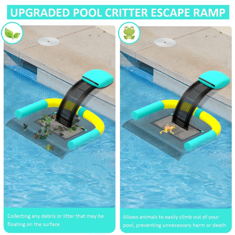 - But that's not all! The pet water escape ramp also comes with a built-in net that collects leaves, twigs, and other debris floating in your pool. With this critter escape ramp, you won't have to worry about skimming the pool manually, saving you time and energy