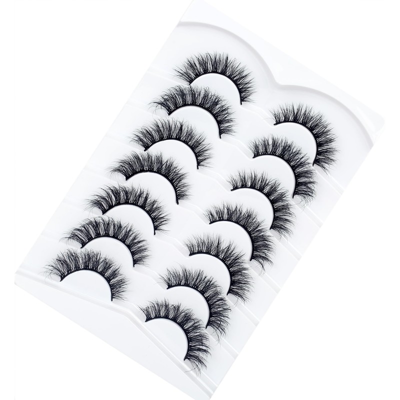 Pooplunch False Eyelashes Fluffy Cat Eye Look Wispy Fake Eyelashes Faux Mink Lashs 7 Pairs Pack