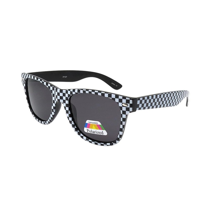 - classic rectangular sunglasses polarized lens black frame white checker unisex sunglasses
