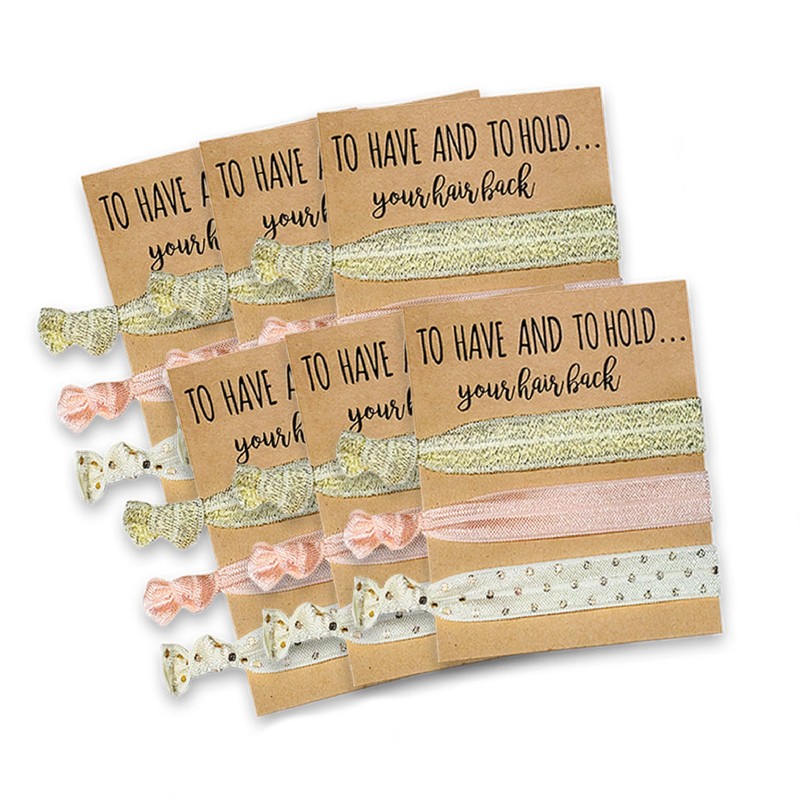 - 6 BRIDESMAID GIFTS- This bulk pack includes 6 giftable cards, each including 3 elastic hair ties. Perfect as bachelorette party favors, flower girl gifts, wedding favors, bridal shower gifts!