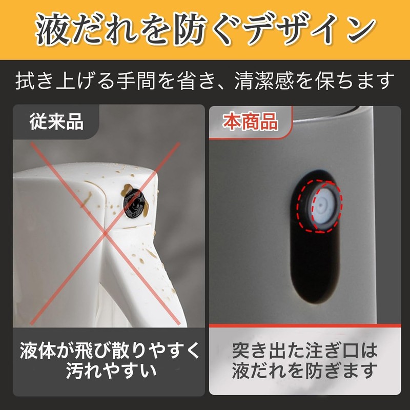 - 大容量250ml:大容量の250mlボトルなので、長期間使用できます。また、注ぎ口も大きく入れ替えが容易です。