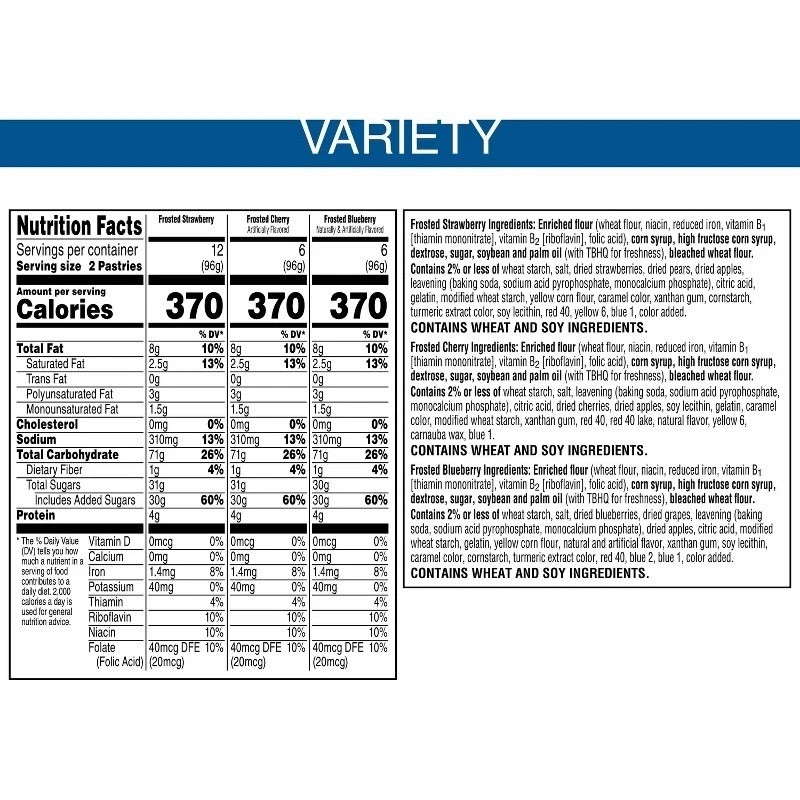 Includes one, 81.2oz box containing 48 toaster pastries; 24 pouches total, two pastries per pouch; Packaged for freshness and great taste