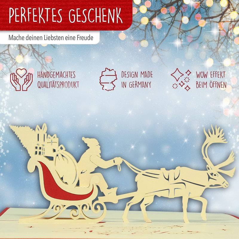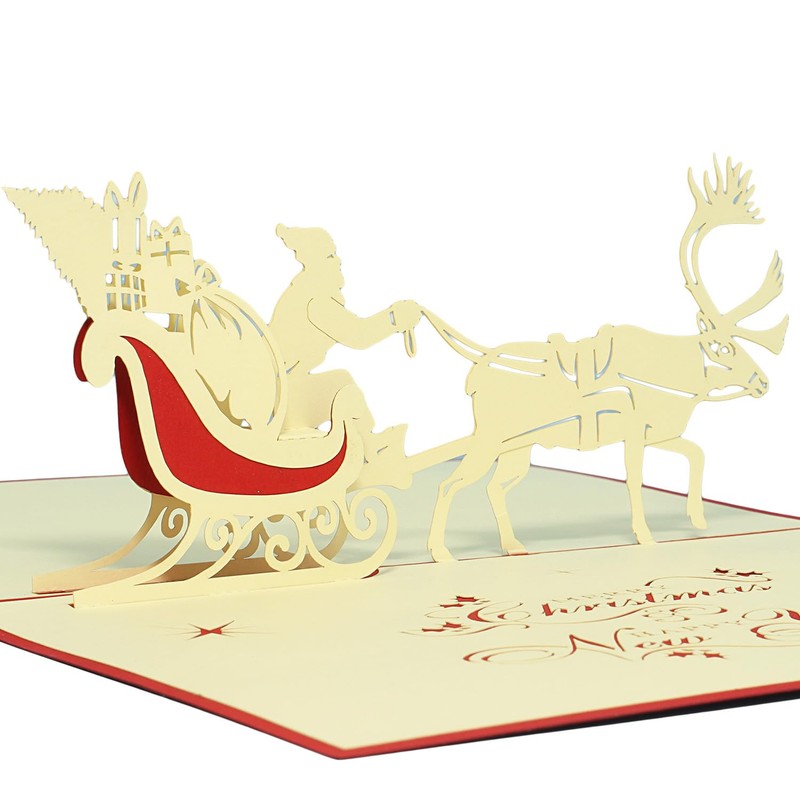 • Lin pop-up 3D Christmas card Christmas Santa with Reindeer