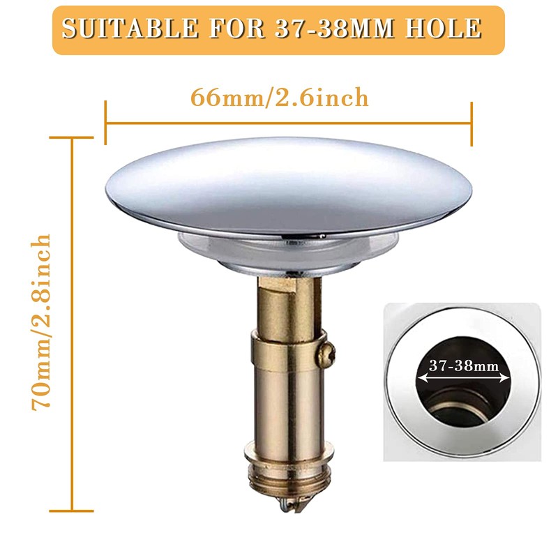 - ✔【SIZE】Pop Up Sink Plugs made of high quality copper and chrome,very sturdy. The Sink Stopper has a lid diameter of 66 mm,a bounce height of 70 mm and the Working height is 40 mm.The diameter of the sealing ring is 39 mm,which is suitable for 37-38 mm drainage ports for rapid drainage