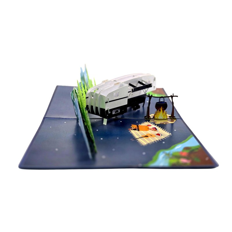 Pop-Up Greeting Card Caravan Camping 3D Folding Card for Campers & Outdoor Fans Handmade Card with Campfire Scene