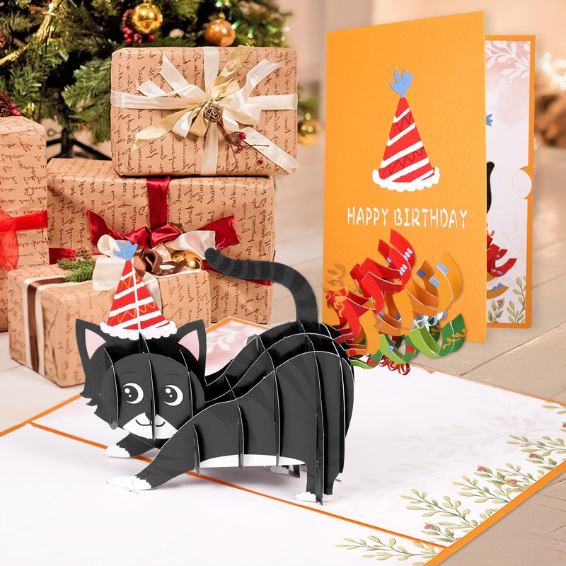 - 😺Außergewöhnliche Geschenke: Suchen Sie nach einer einzigartigen Geburtstagskarte für Katzen? Diese Pop-up-Karte zeigt ein lustiges, einzigartiges 3D-Design - eine niedliche Katze mit etwas buntes Band am Schwanz. Es wird die beliebteste und geliebteste Grußkarte für Katzenliebhaber sein.