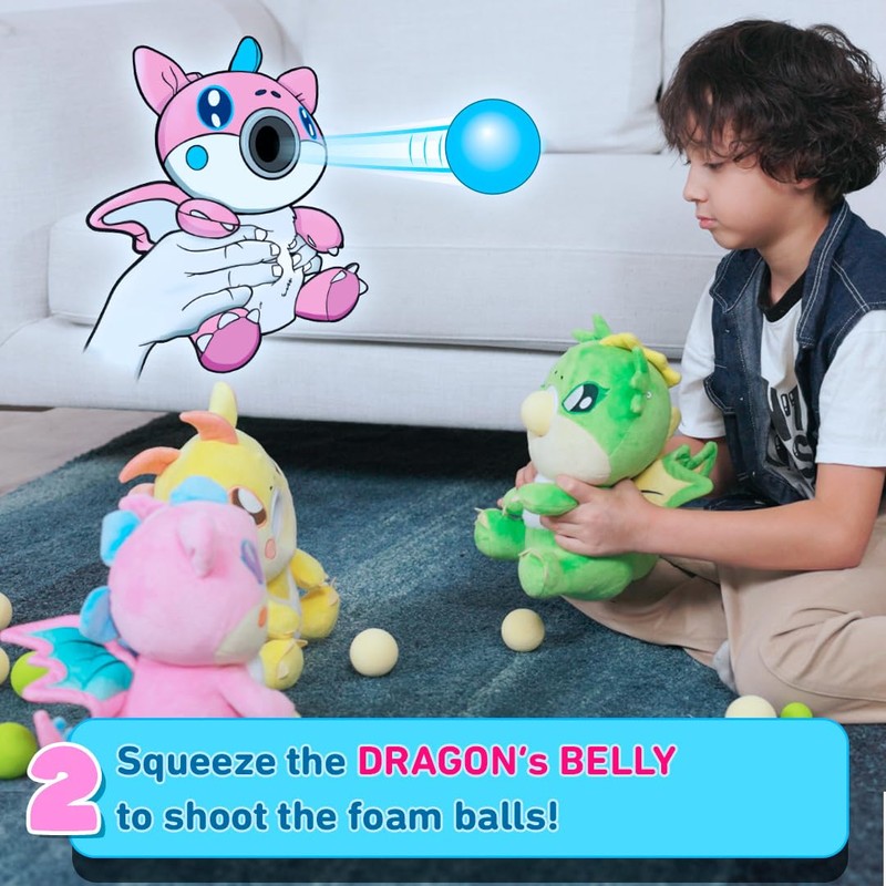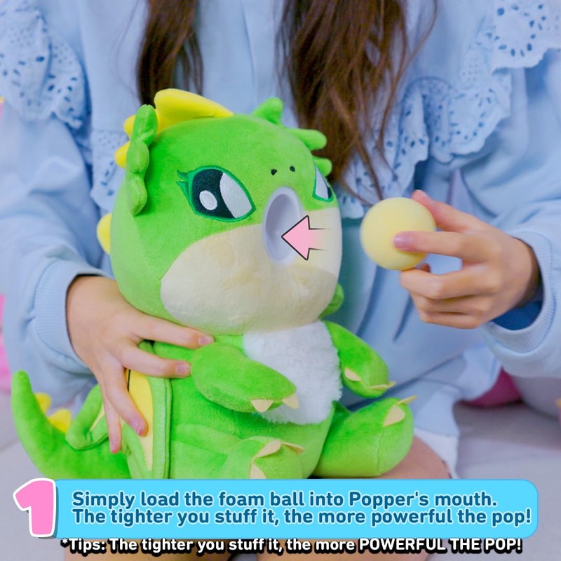 Popbro-Plush Popper Max Dragon Series - Dewell - Super Large Foam Ball Shooter - 11" Interactive Plush Toy for Kids – Emotional Cheer Support for Kids (Green)