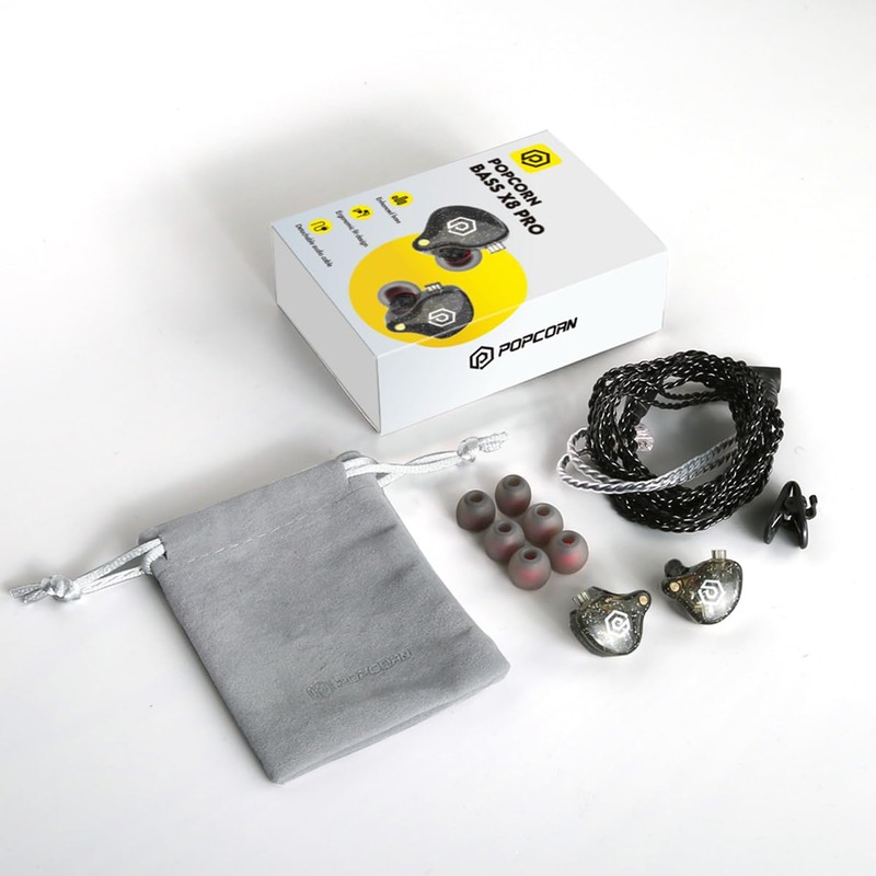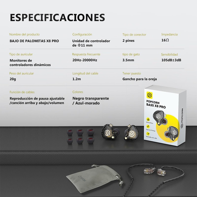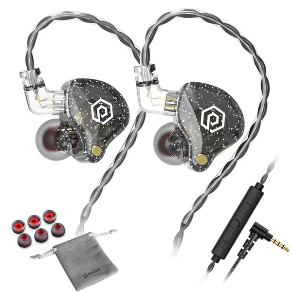 POPCORN Audífonos Intraurales Bass X8 Pro con Micrófono 3.5mm,Hybrid monitores intraurales, Auriculares HiFi de Graves Profundos con Cables Desmontables,Auriculares aislantes de Ruido (Negro)