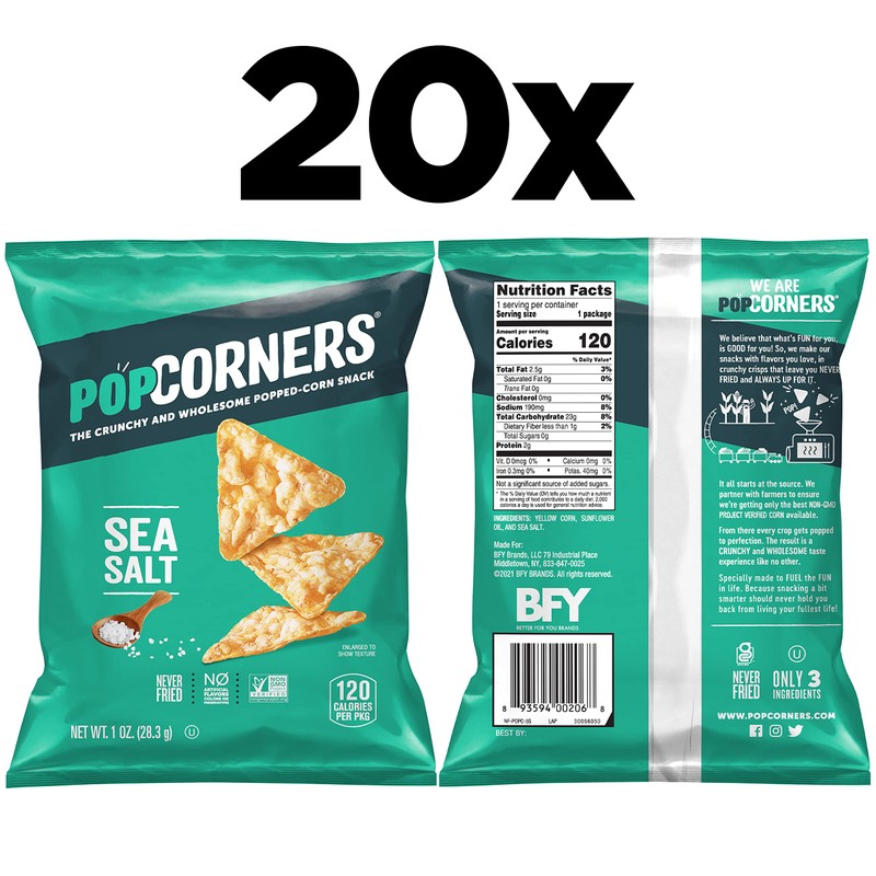 - CONTAINS: 20 - 1 oz snack packs of crunchy and wholesome popped-corn chip snacks: Sea Salt