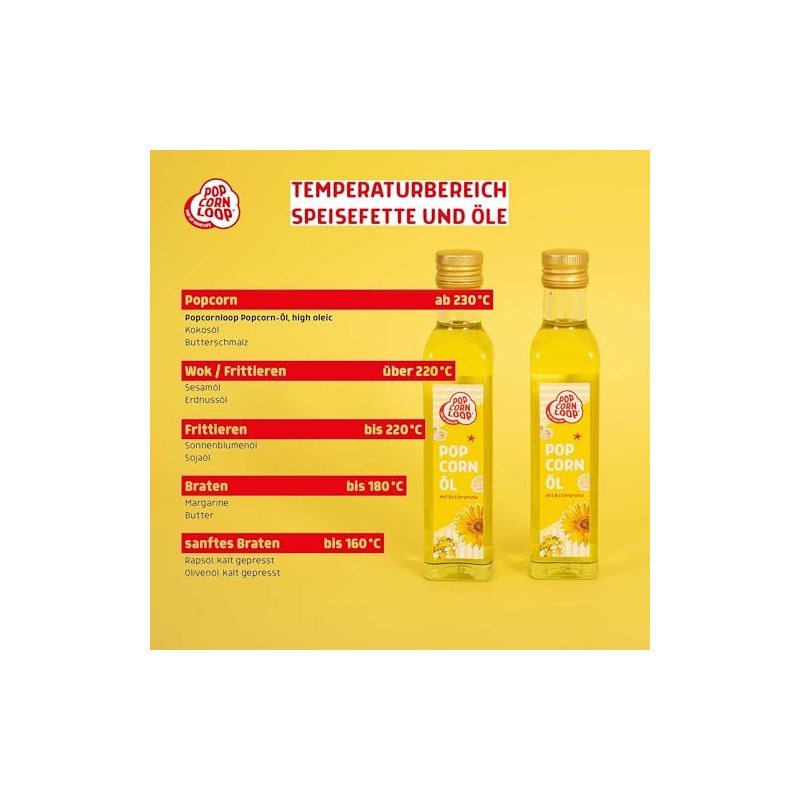 - 🌞 POPCORNÖL - Das Öl ist besonders für die Herstellung von frischem Popcorn mit dem Popcornloop geeignet