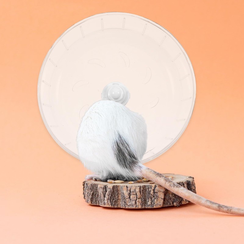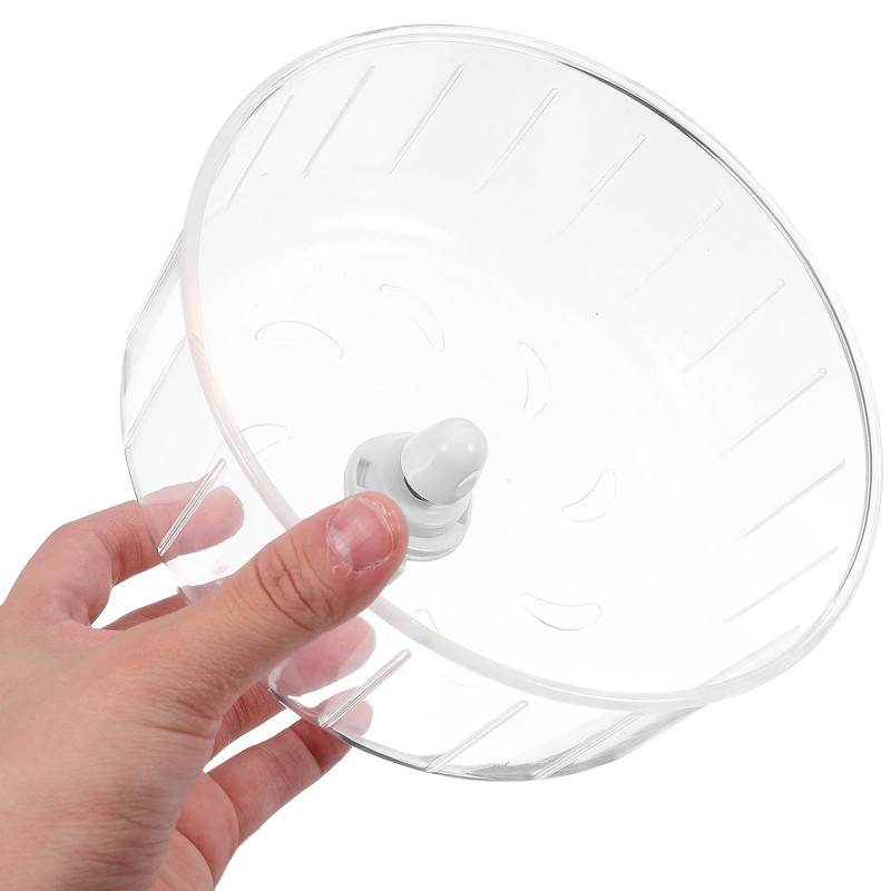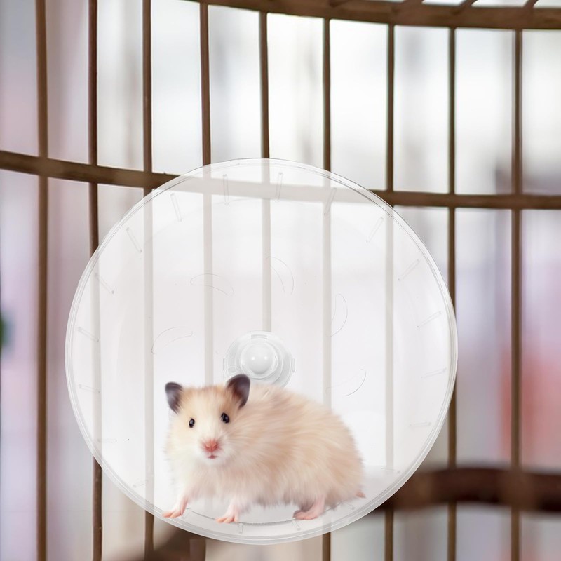 The small wheel shows a Clear design, visually spacious and bright, it' s easy to let you watch your pet playing inside. The of the cylinder is smooth that won' t hurt the pet' s feet.