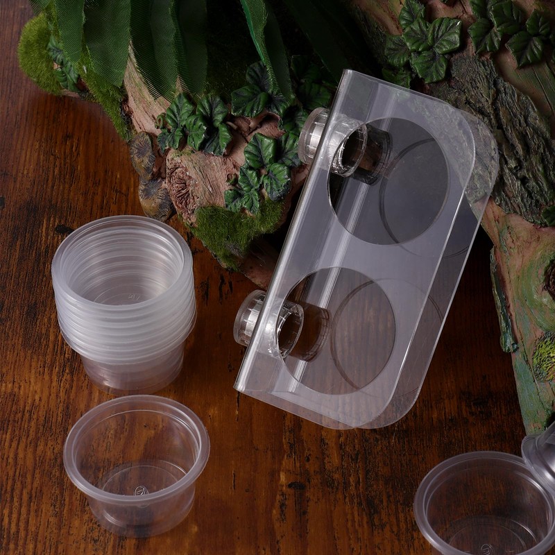 POPETPOP Reptile Feeder with 10 Plastic Bowls for Reptile Feeder Transparent Gecko Lizard Snakes