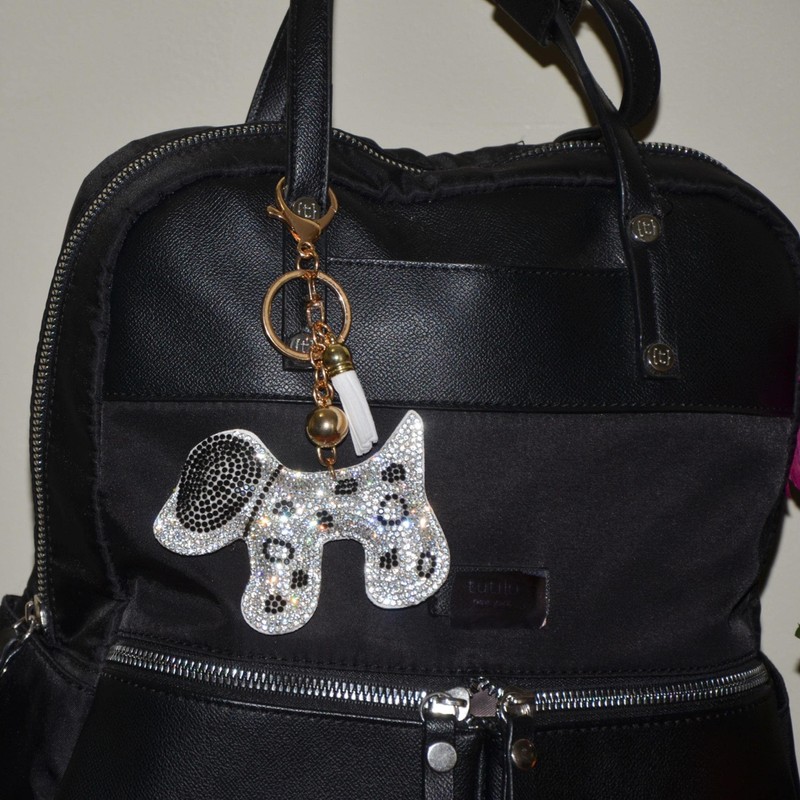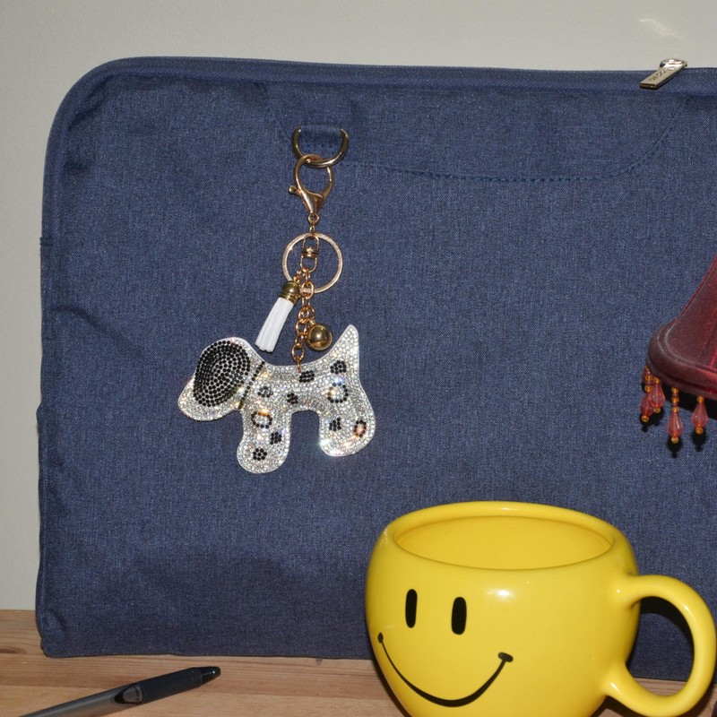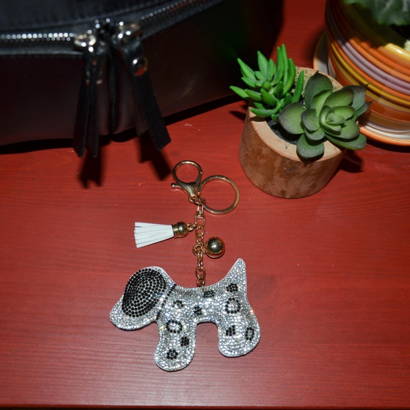 Popfizzy Dog Keychain, Bling Backpack Charm, Rhinestone Bag Charms, Keyring Key Fob