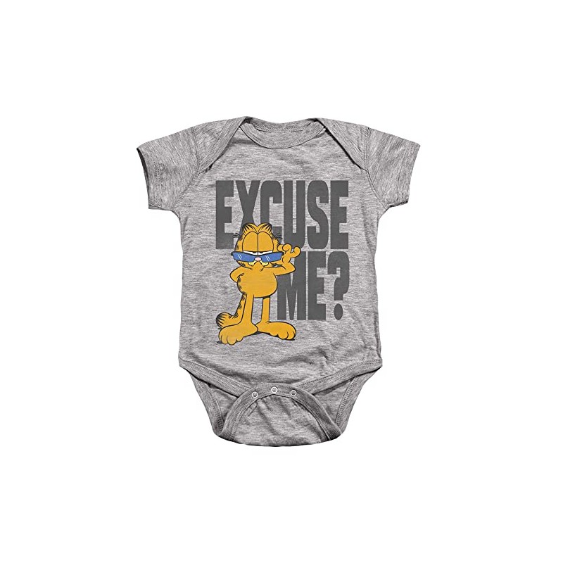 - GARFIELD EXCUSE ME? UNISEX SNAP SUIT - Our unisex infant snap suit is constructed of 100% cotton with short-sleeves and is perfect for your baby girl or boy.