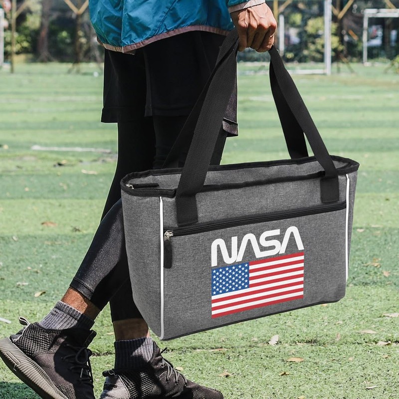 Popfunk NASA American Flag Worm Logo Soft Sided Insulated Tote Cooler Bag, Lightweight, Thermal and Reusable for Grocery, Picnic, Beach, Work