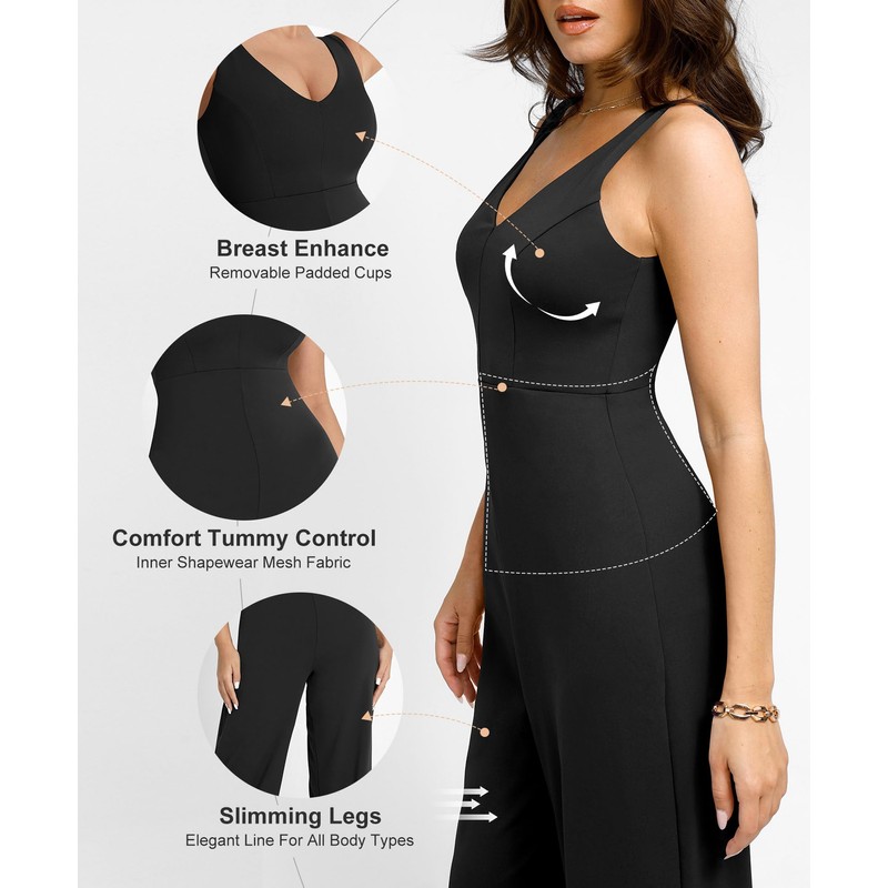 - UNIQUE BODYCON JUMPSUIT: Stand out from the crowd with our unique jumpsuits.Our bodycon jumpsuit features built in shapewear, with the function of enhancing body's natural shape. The fitted bodice highlights your waist, while the wide leg pants fit different leg shapes, elongating your legs for a taller and more elegant look. Nice for those who want to make a fashion statement, the shapewear jumpsuit is a nice in your wardrobe