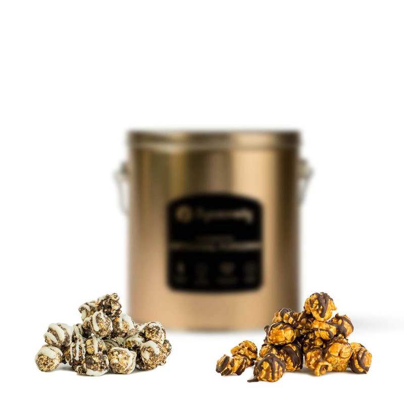 Popinsanity Gourmet Popcorn Deluxe Multi Flavor Popcorn Tin - Cookies & Cream | Caramel Chocolate Drizzle - Non-GMO & Dairy Free - Holiday, Anniversary, Get Well, Corporate or Birthday Gift - 1 Gallon