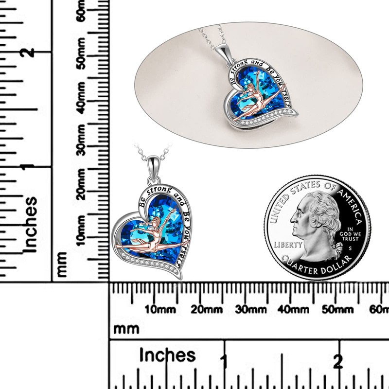 POPLYKE Ballerina Necklace Gifts Sterling Silver Dance with Blue Heart-Shaped Crystal Pendant Necklace Jewelry for Women (silver-dance crystal necklace)
