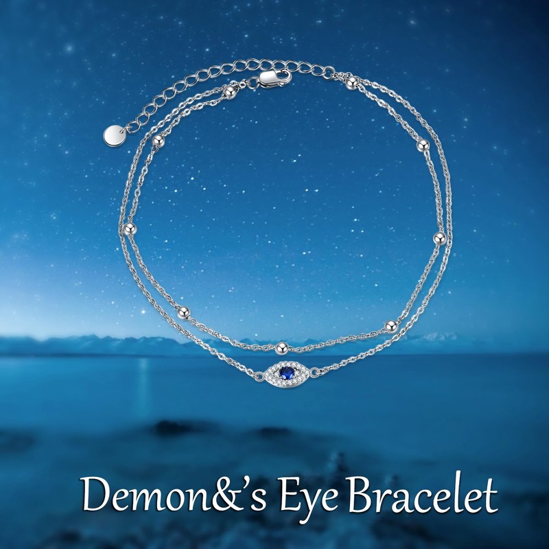 POPLYKE Evil Eye Bracelet for Women 925 Sterling Silver Evil Eye Double Layered Chain Summer Beach Evil Eye Jewelry Gifts