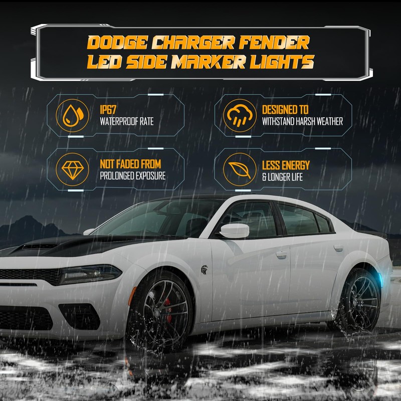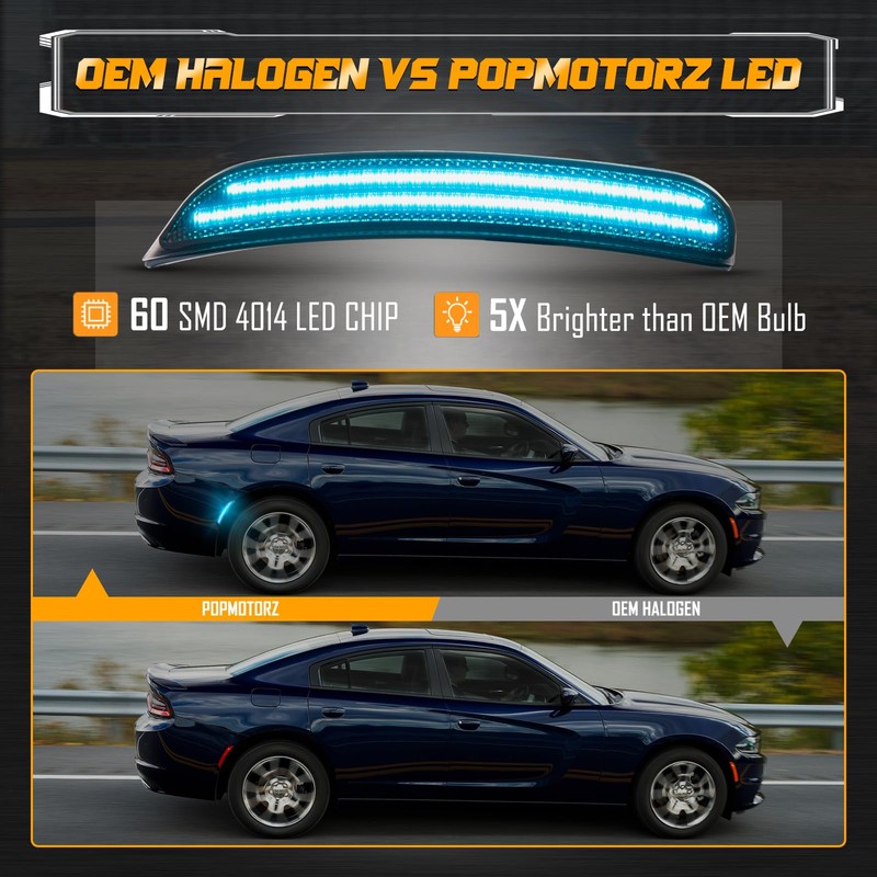 - 🚗【FUNCTION】 POPMOTORZ Dodge Charger LED Fender Side Marker Lights made to replace the Rear SideMarker halogen lights on a Dodge Charger, To update your Dodge Charger with a brighter and noticeable set of Smoked lens LED Side Marker Lamps, improving the overall look of your muscle car and giving it a bigger presence, added safety and visibility, giving your Dodge Charger an entirely new look.