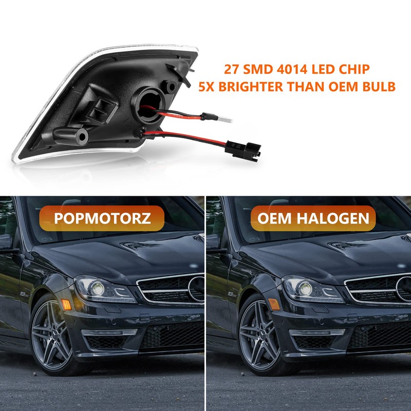 POPMOTORZ Full LED Front Bumper Side Marker Light Assembly, Amber Blinker Signal Lamp Kit Compatible With 2008-2011 Mercedes W204 C250 C300 C350 & 2008-2013 C63 AMG Driver & Passenger Side-Clear Lens