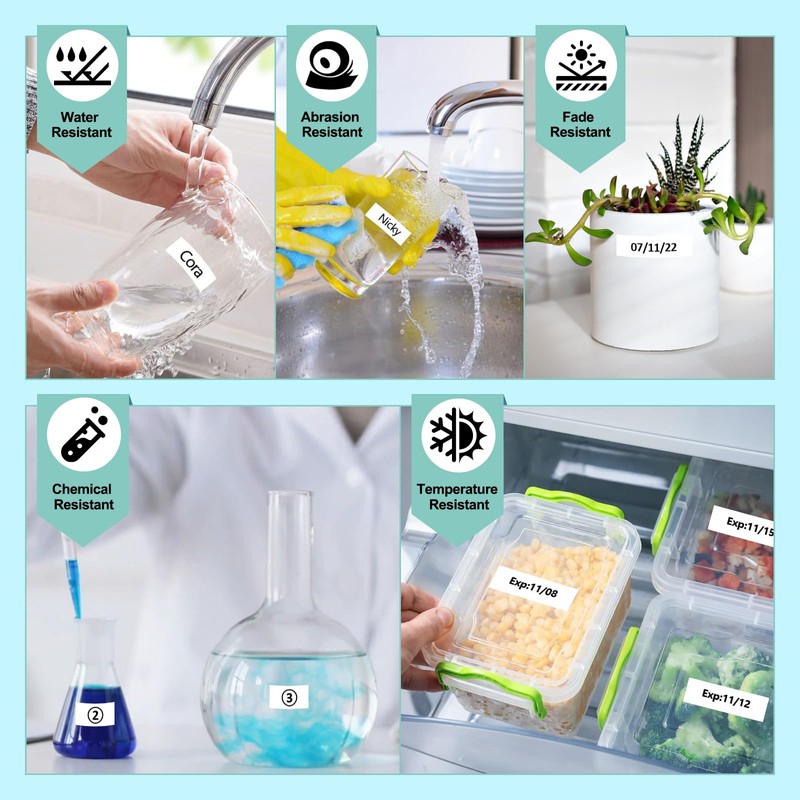 - More durable: POPOBUY label tapes are waterproof, oil-proof, abrasion-resistant, chemical-resistant, resistant to high or low temperatures, and resistant to fading