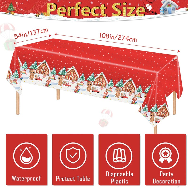 POPOYU Christmas Party Table Cloth,137 * 274cm Christmas Table Cover Table Decorations Plastic Waterproof Rectangular Tablecover Xmas Tablecloth for Christmas Evening Holiday Party Table Decorations