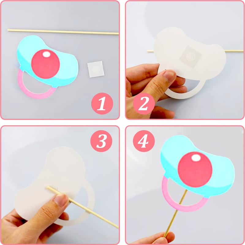 - Package includes: This set contains everything you need for your baby shower in one package. Inflatable frame included (23 x 20 inches). 30 pieces paper props with bamboo sticks, glue dots; the size is suitable for both adults and babies.