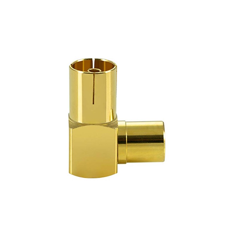 The gold-plated angle adapter allows optimal transmission quality without interference and is compatible with all common coaxial cables.