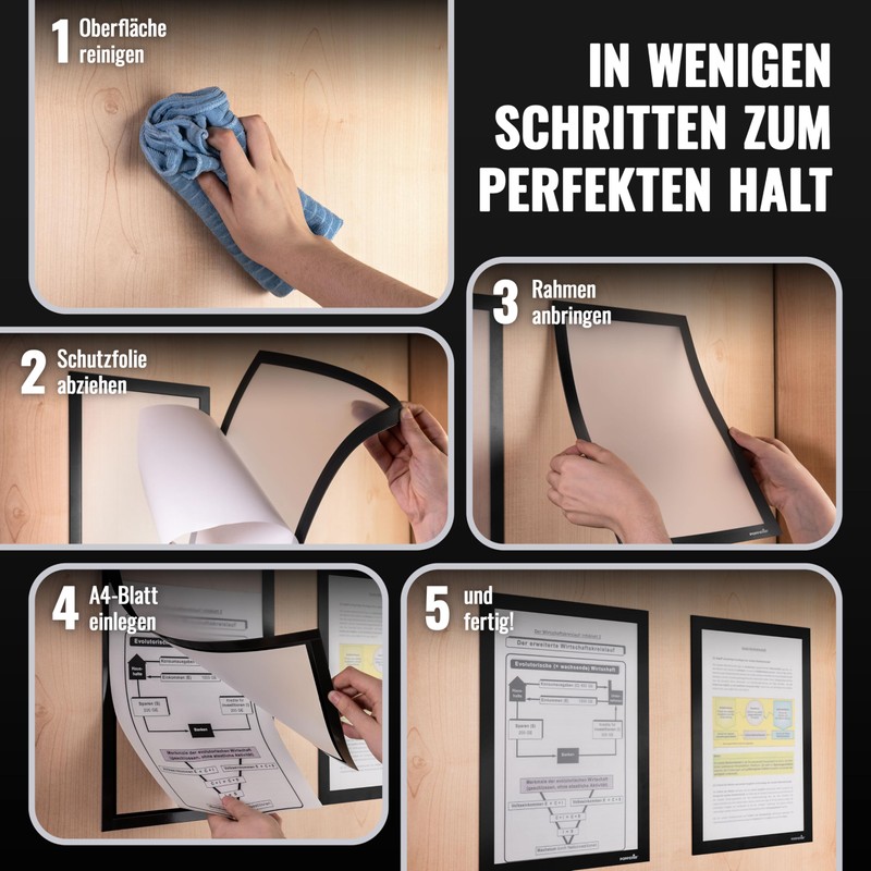 - Box contents: 5x self-adhesive magnetic information frames A4, 32.4 cm x 23.7 cm, material: PVC, colour: black