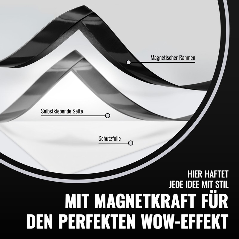 The Poppstar magnetic info frame allows an elegant presentation of frequently changing information. Our self-adhesive PVC frame can be easily attached to different surfaces thanks to an adhesive layer. The front of the frame is equipped with a magnetic closure that allows quick exchange of documents and announcements while securely fixing them. Technical details:- Material: PVC.