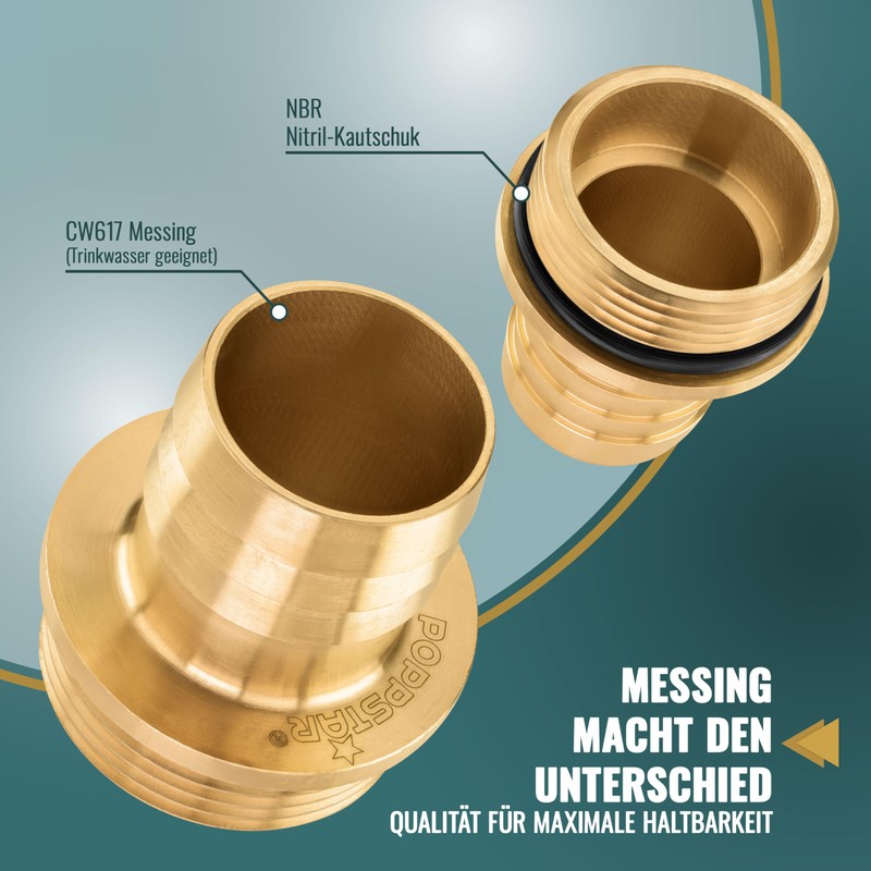 - High-quality brass hose nozzle with collar and O-ring for the 1 1/4 inch hose connection