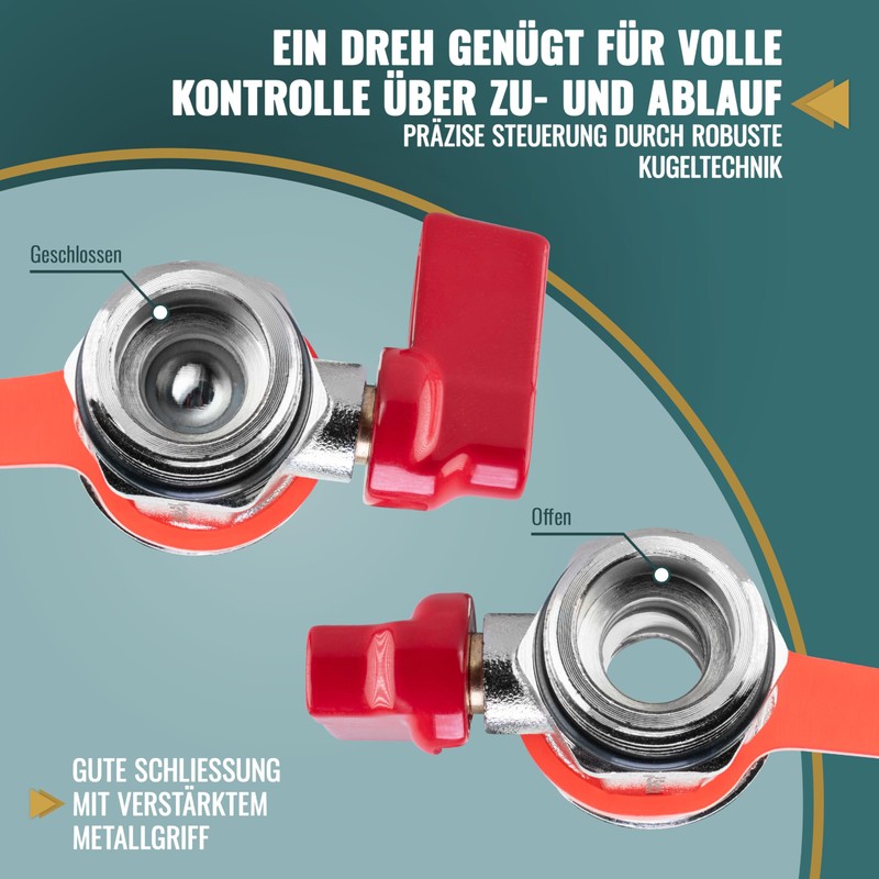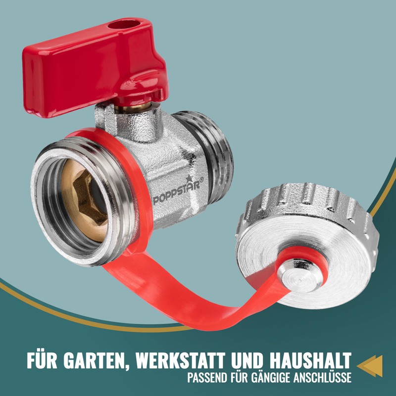 • Kugelventil mit robusten Metallgriff und Schutzkappe 3/4" Innengewinde und integrierter Dichtung, verhindert unbeabsichtigtes Öffnen