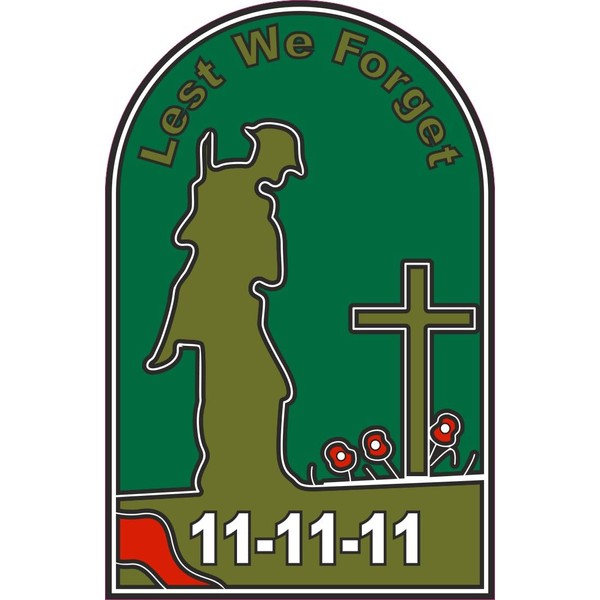 - Featuring poppy and soldier logo and wording "Lest we forget 11.11.11."
