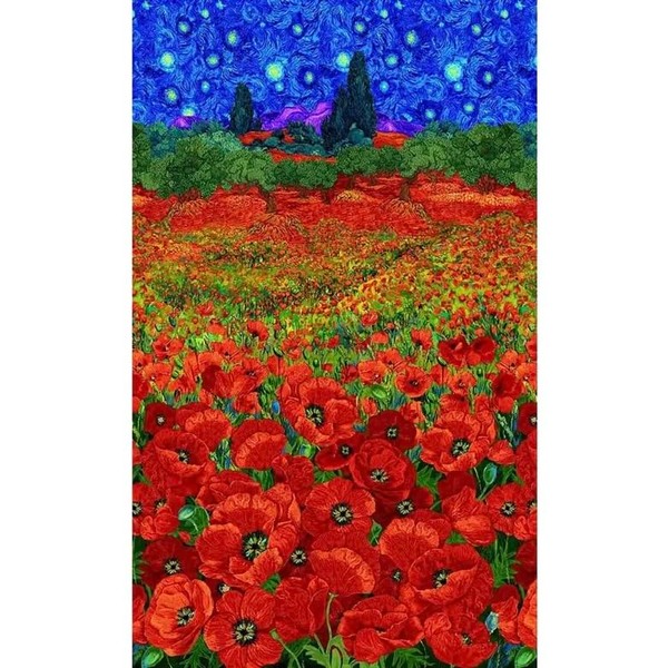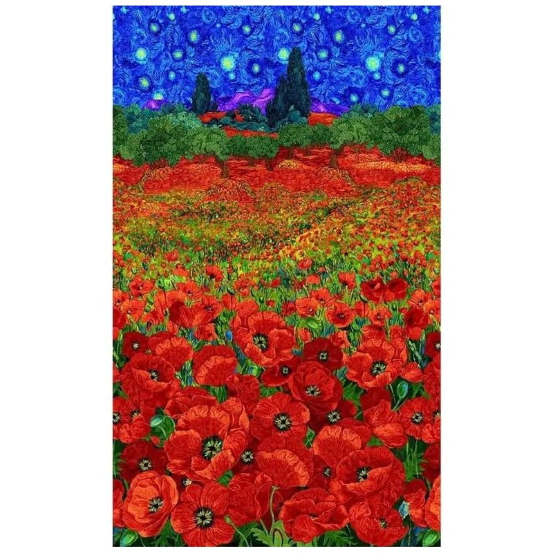Poppy Dreams Multi Poppies Field Panel, 100% Cotton Fabric, Quilting Fabric